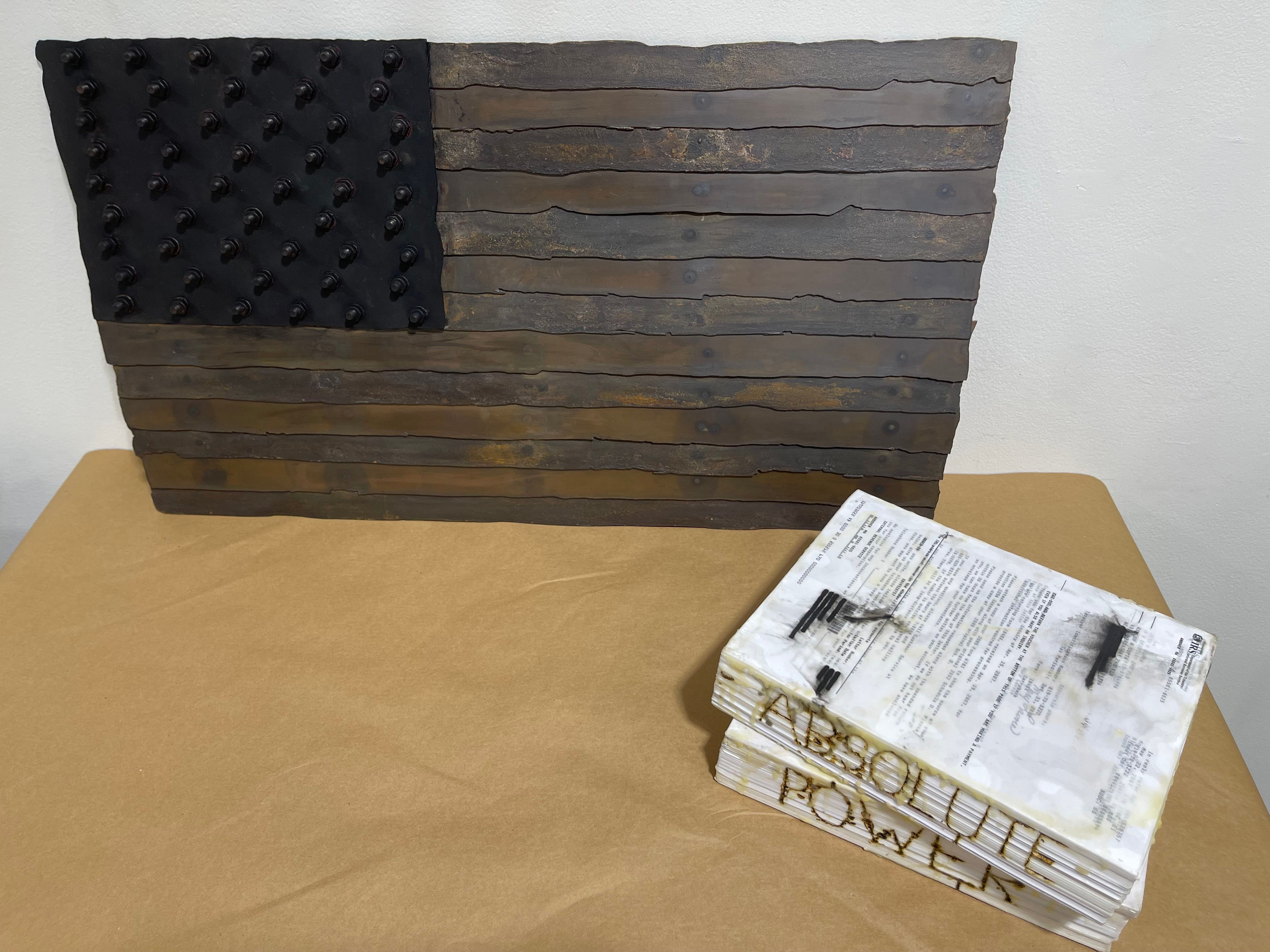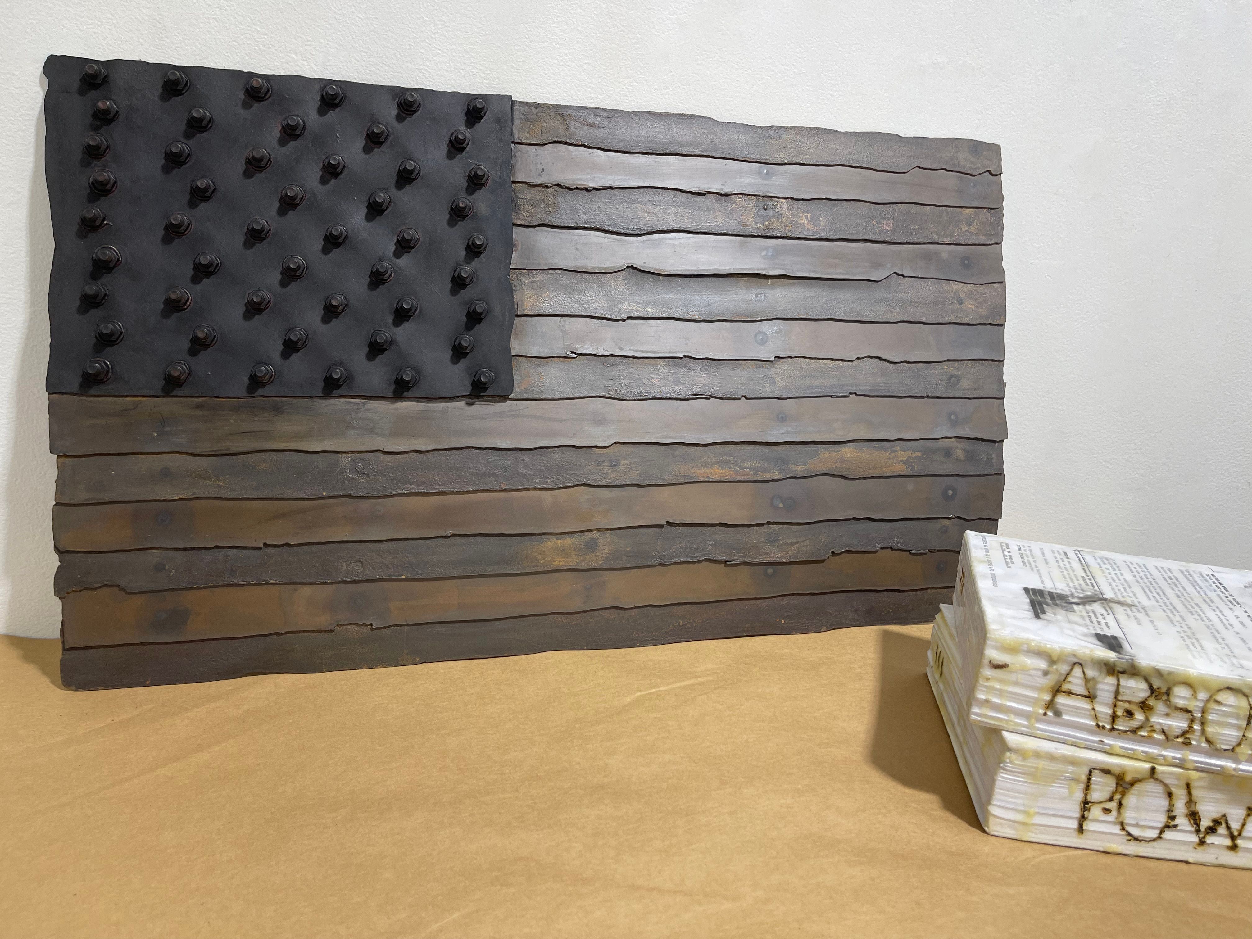 Flag: 17 in x 30 in Object: 9 in x 11 in x 5 in